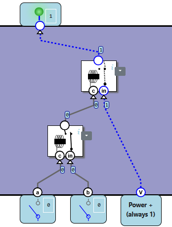 Concrètement on aura, en plus des 2 entrées, une source d'énergie constante. C'est important ! La porte logique doit être alimentée électriquement !